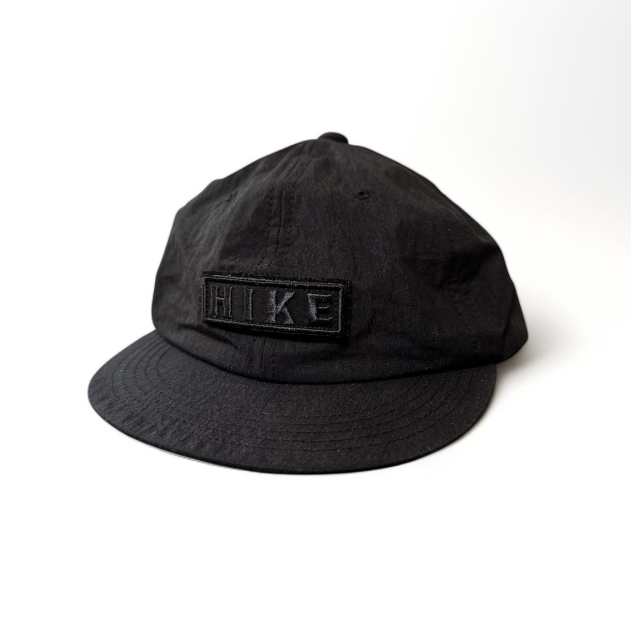 HIKE(歩く)、BREW (醸造する)、GROW(育てる)のHIKEを刺繍ワッペンで表現。