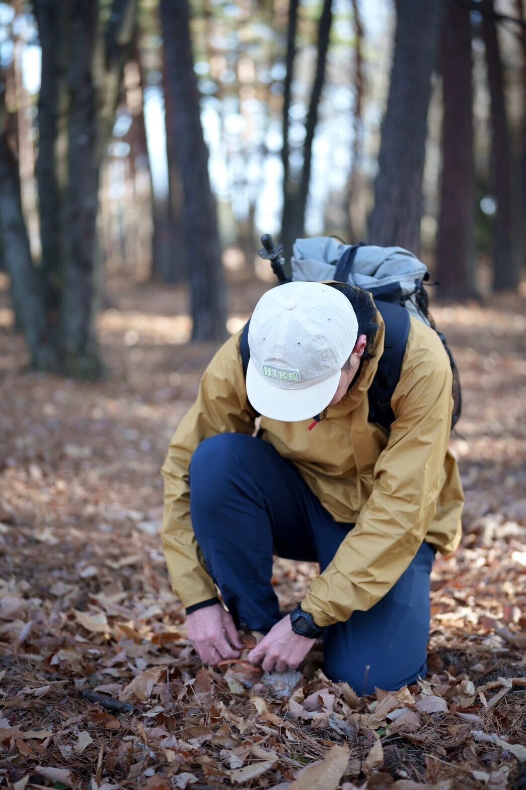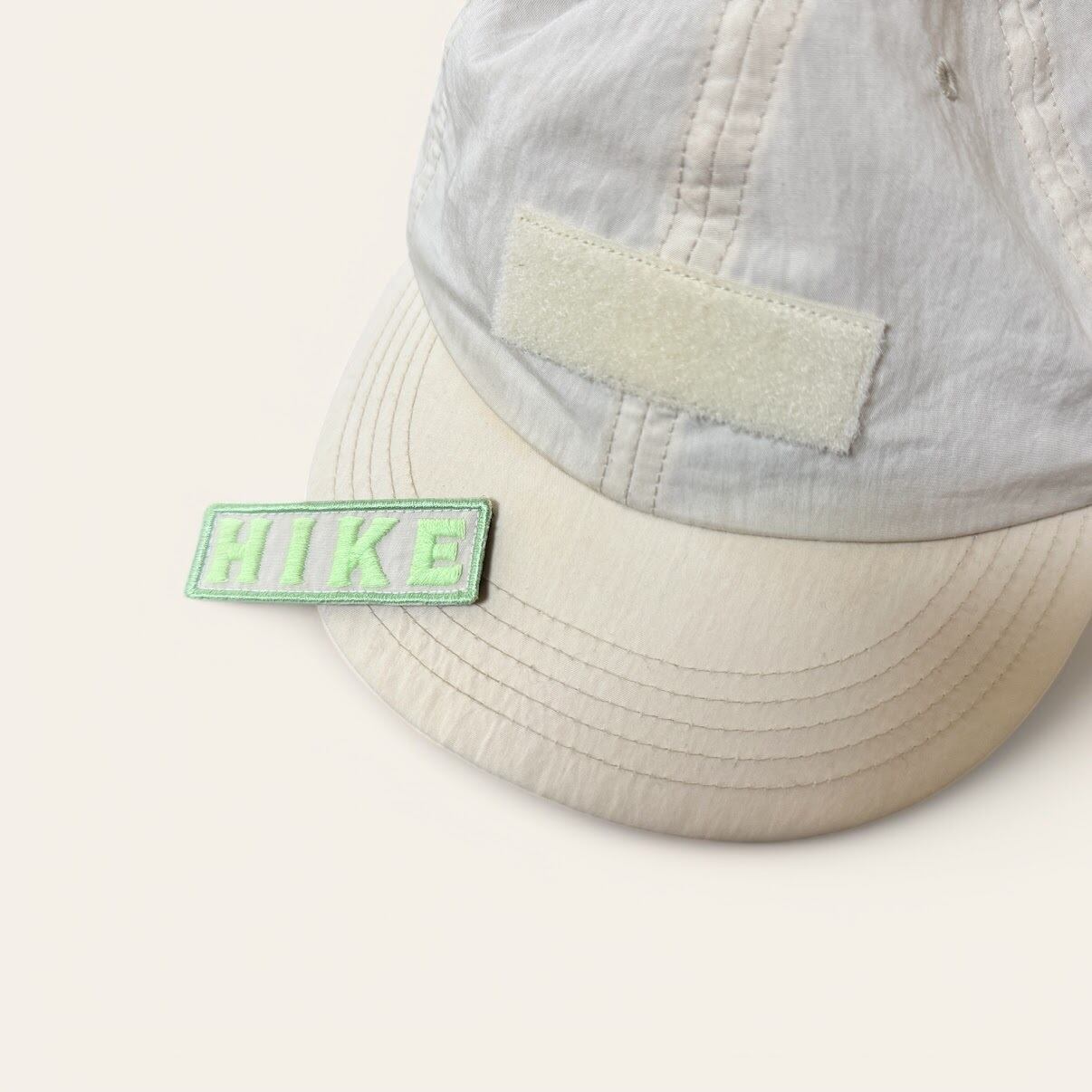 HIKE(歩く)、BREW (醸造する)、GROW(育てる)のHIKEを刺繍ワッペンで表現。