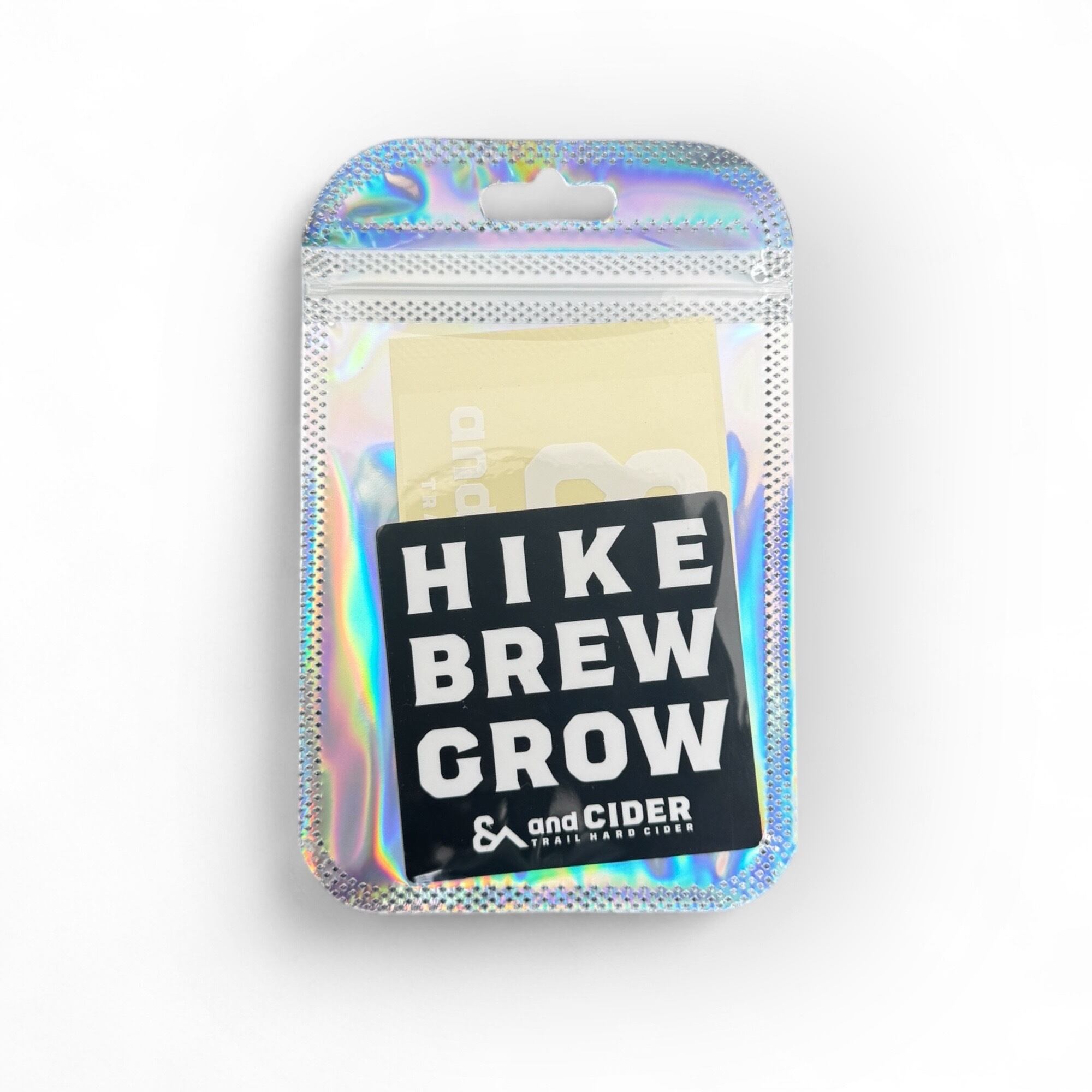 and CIDERのロゴとHIKE.BREW.GROWのステッカー2枚セット。